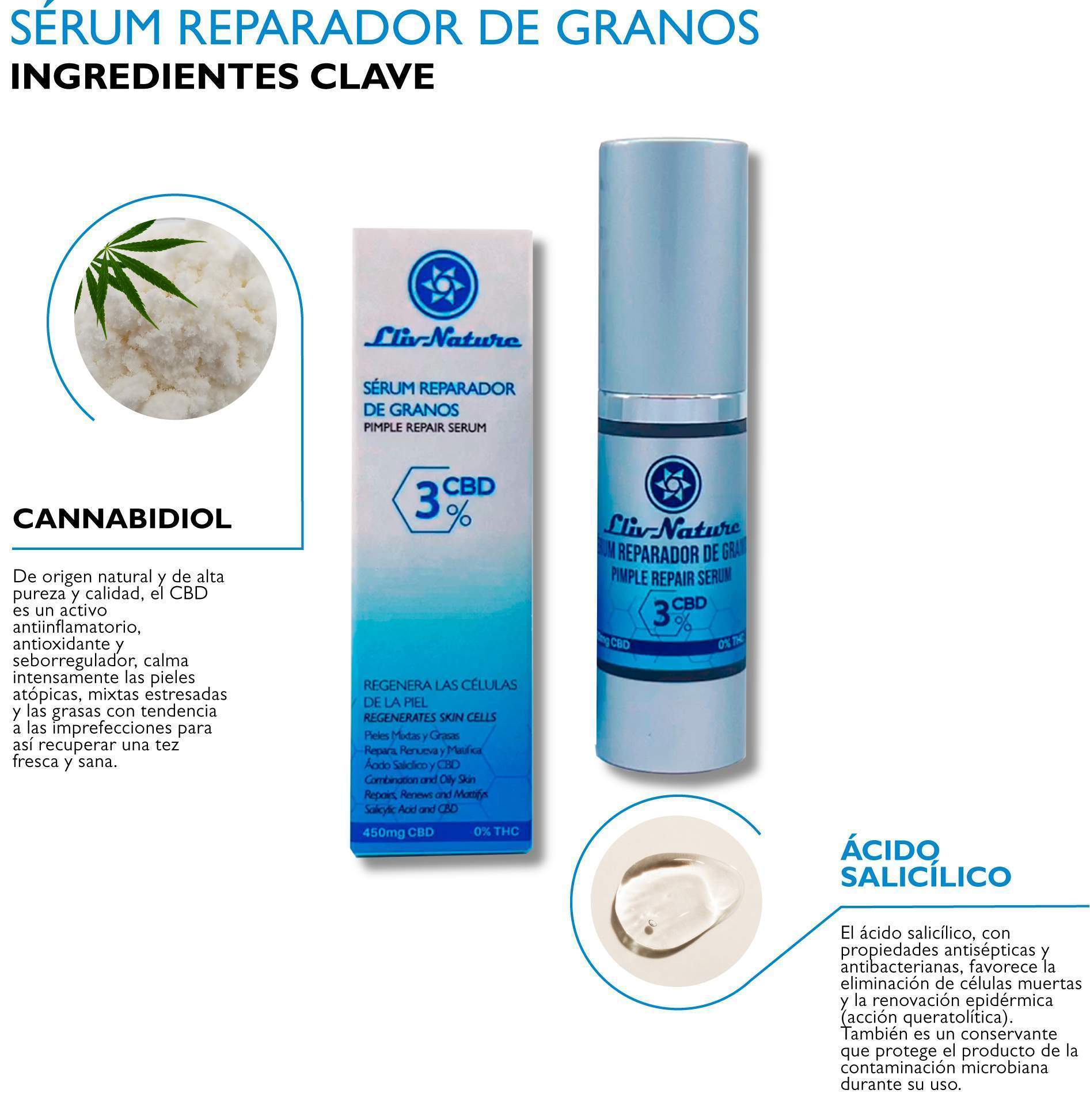Cannabidiol: antiinflamatorio, reparador, analgésico, antioxidante, seborregulador y estimula el crecimiento celular.