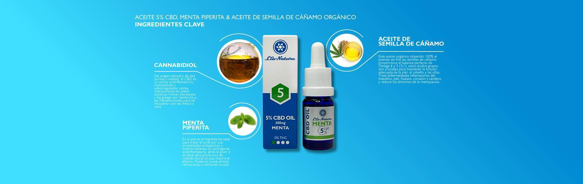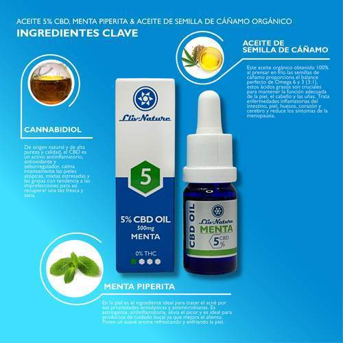 Aceite 5% CBD con Aceite Semilla Cáñamo Orgánico y 1% Menta 10ml