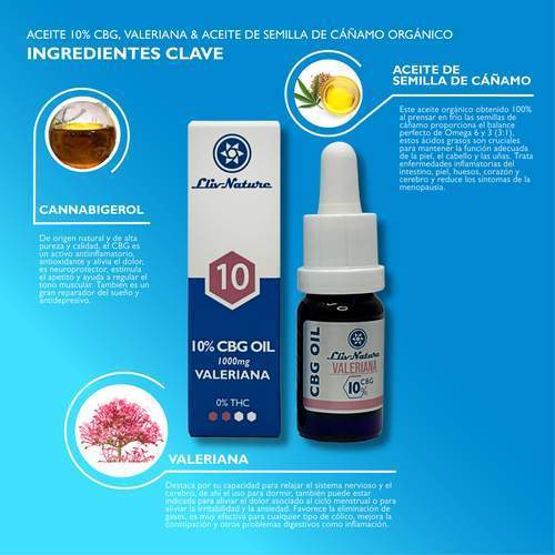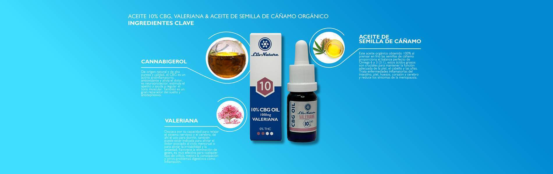 Aceite 10% CBG con Aceite Semilla Cáñamo Orgánico y 1% Valeriana 10ml