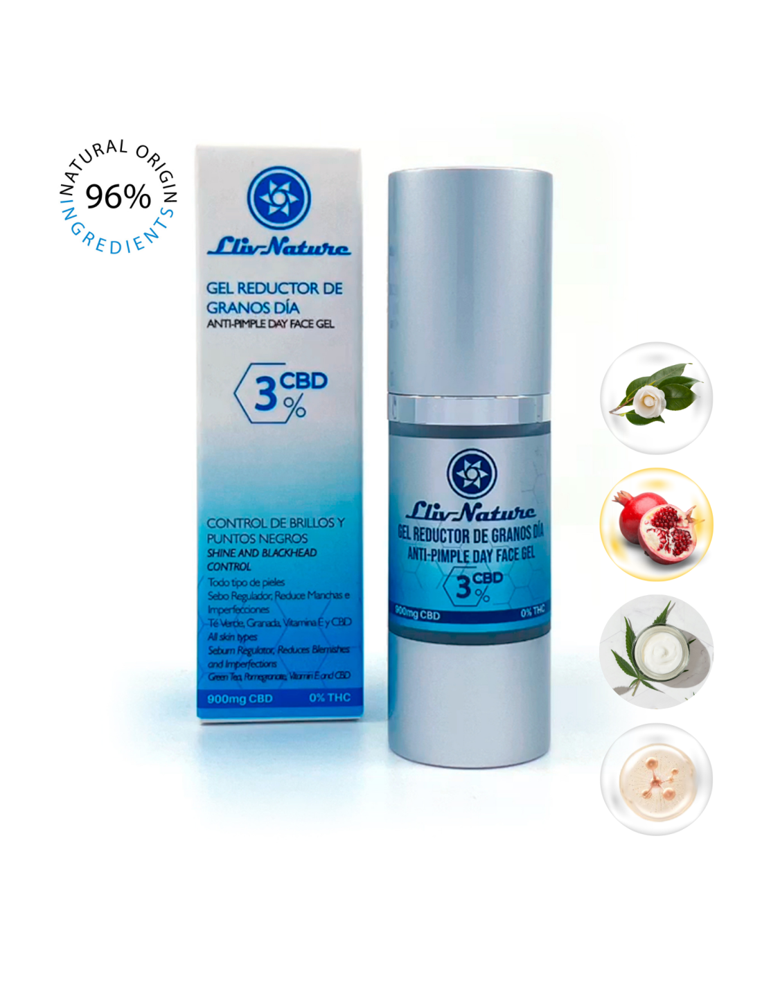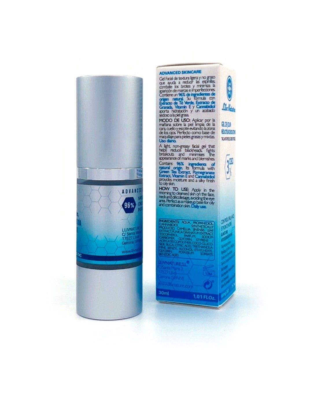 Gel Facial de textura ligera y no graso que ayuda a reducir las espinillas, combate los brotes y minimiza la aparición de marcas e imperfecciones. Contiene un 96% de ingredientes de origen natural. Su fórmula con Extracto de Té Verde, Extracto de Granada, Vitamin E y Cannabidiol aporta hidratación y un acabado sedoso a la piel grasa. Todo tipo de pieles.