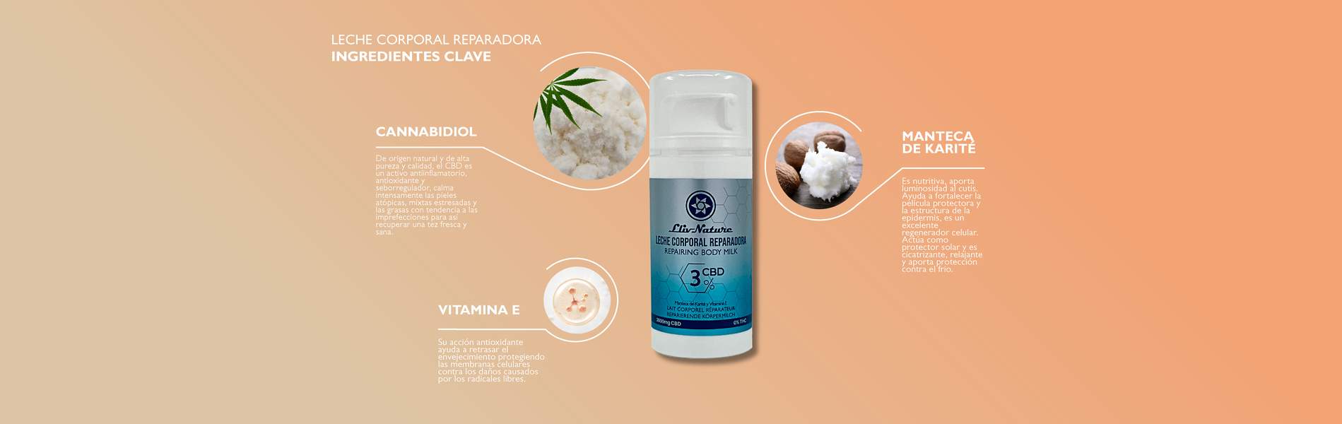Cannabidiol: antiinflamatorio, reparador, analgésico, antioxidante, seborregulador y estimula el crecimiento celular.